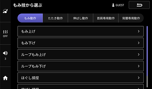 自分好みのマッサージにカスタマイズ登録「ユーザーカスタマイズモード」