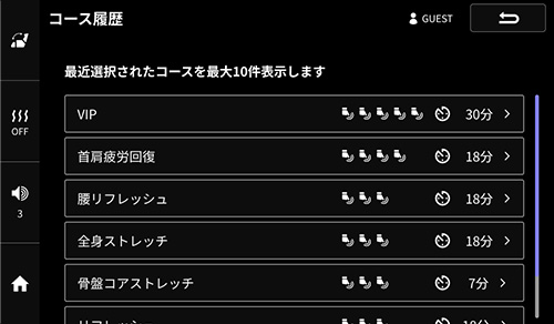 新たに本機の特長とおすすめのマッサージメニューを盛り込んだ全身マッサージコース「スタンダード」と、首・肩・背を中心に上半身のコリをしっかりほぐすコース「ハード」の2種類を新搭載。心地よい全身マッサージから気になる部位ごとの集中マッサージまで毎日のコンディショニングケアに最適な計40種類のコースメニューから選べます。