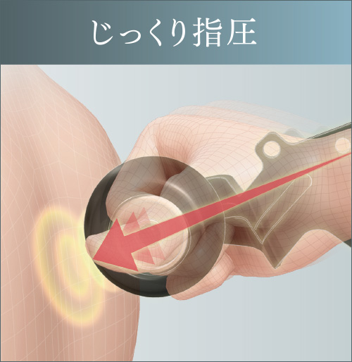もみ玉突出時(指圧動作)は、徐々に動作速度を低速化させ、じっくりともみ玉が体を押し込みます。