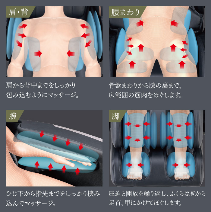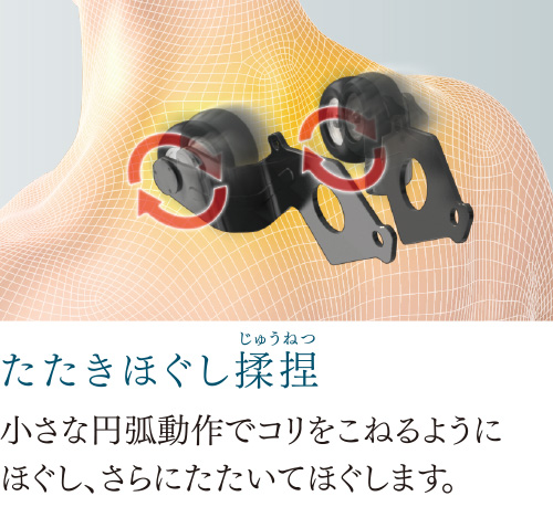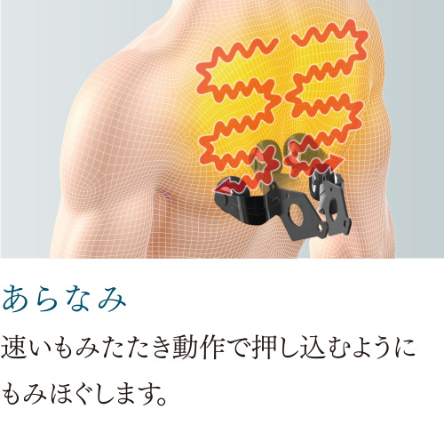 こだわりのもみや揉捏動作、独自のマッサージ動作で気になるポイントを集中マッサージします。