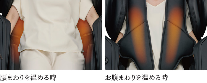 ヒーターを内蔵した背パッドを採用。背面に敷くと腰まわりを、ファスナーを外して前面にセットするとお腹まわりを温められる「即熱マルチヒーター」と、冷えやすい足先をじんわり温める「足裏ヒーター」を搭載しています。
