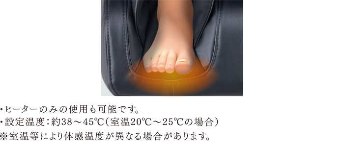 | ヒーター設定温度 | 約38~45℃(室温20℃~25℃の場合) ※室温等により体感温度が異なる場合があります。 |