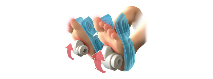 しっかりと足をつかむようにエアーバッグで足首と甲をホールドした後、専用ローラーが足裏全体を集中的にマッサージします。