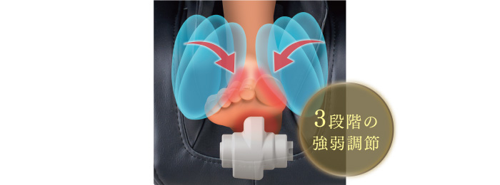 足首から甲を押さえるエアーバッグの強弱調節をすることで足裏へのローラーの強さを3段階から選べます。またローラーの動作をOFFにもできます。