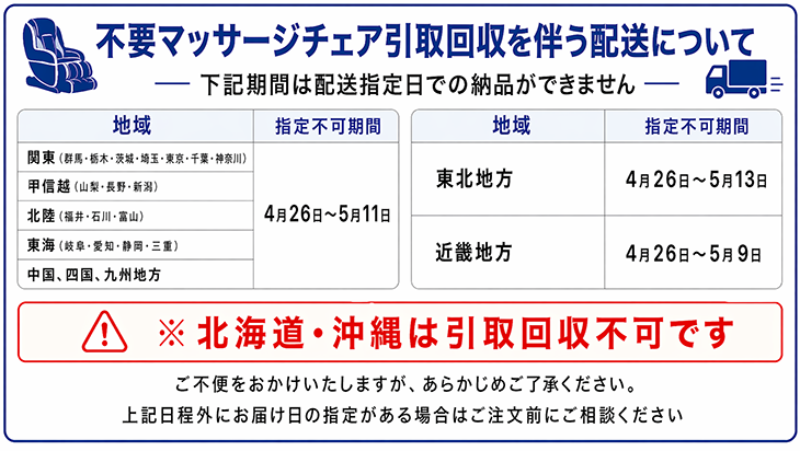 ●マッサージチェアをお買い上げ戴いたお客様のみ引取可能です